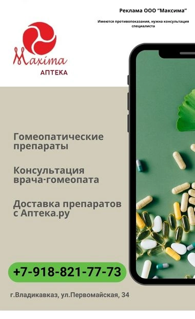 Контакты «МАКСИМА аптека / Гомеопатия / Консультация гомеопата / Аптекару»: